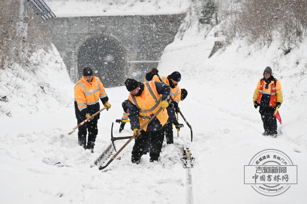 短暂的天窗作业结束后,队员们冻僵的双手顾不上揉搓,又奔赴果松站进行道岔除雪。