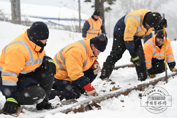 顶着寒风和雪沫,他们手持除雪工具,俯身仔细清理道岔尖轨、滑床板上的每一寸积雪。“道岔是列车的‘转向关节’,一点积雪都可能导致故障。”脸颊冻得通红,膝盖下早已湿透,他们却始终弯腰弓背,不放过任何一处细微隐患。