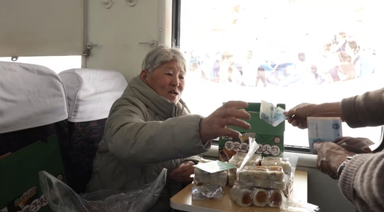 与此同时,2号车厢的“列车大集”正热闹非凡。来自铁路沿线村镇的农户设置了十多个临时摊位,通化山葡萄酒、粘火勺、茶叶蛋、新鲜的大棚蔬菜等特色产品琳琅满目。旅客可以边逛边买,还能听摊主讲产品背后的故事。
