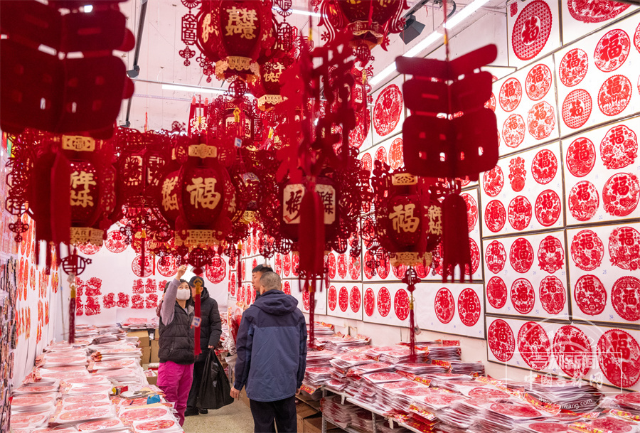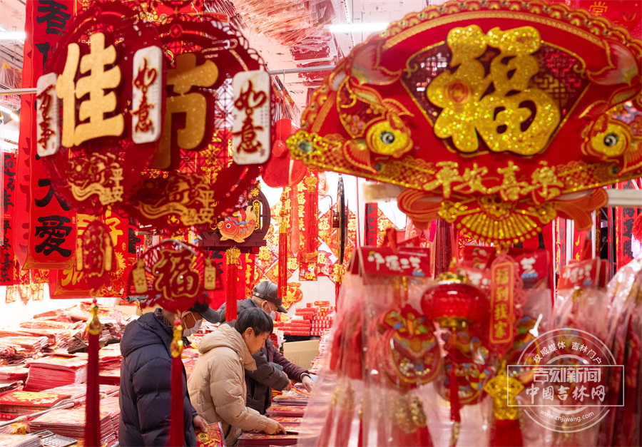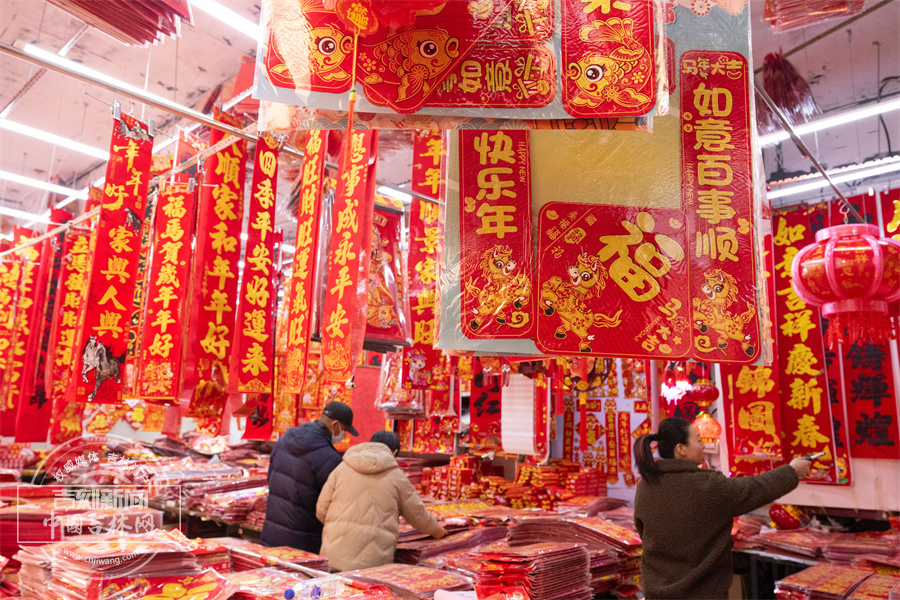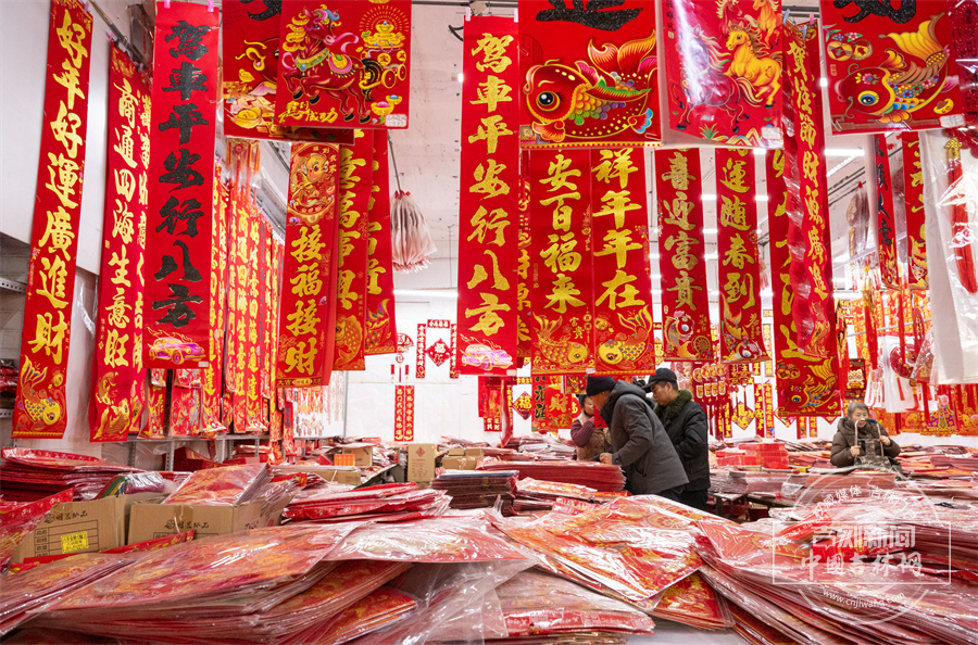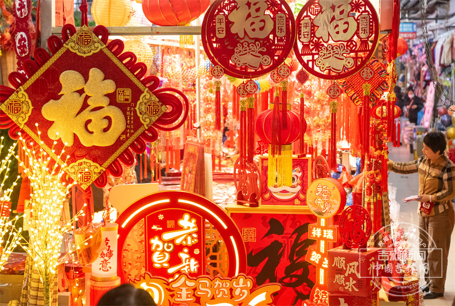 春联与福字琳琅满目,到处洋溢着欢欢喜喜的节日氛围