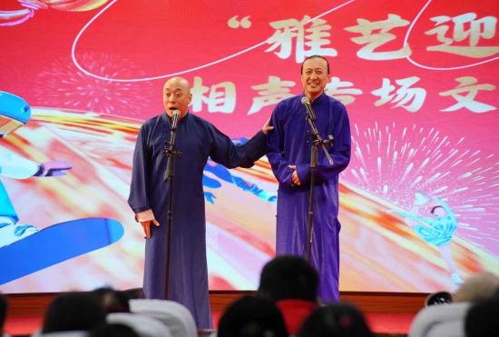 明伦堂内,“雅艺迎春”相声专场笑语连连,包袱不断、掌声此起彼伏,为新春添足喜气。演出结束后,工作人员送上寓意“蒸蒸日上、福气满满”的祝福馒头,市民捧在手里、暖在心头。