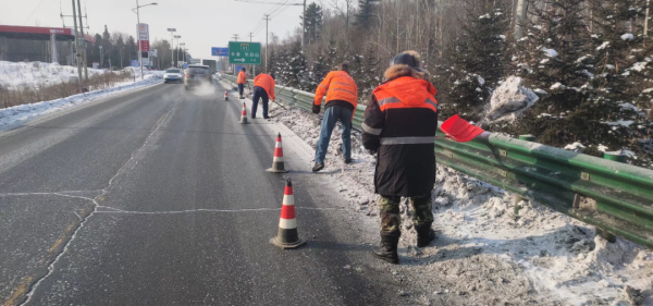 在养护公司的院子里,3辆橘红色的防滑撒布车整齐排列在作业区,车斗边缘凝结着一层薄薄的白霜。东北的凌晨,雪冷风寒,作业人员却额头冒汗,眉毛和睫毛上已经凝结了一层白霜。为避免中途断料,每辆车都按最大载重量装,宁可多带,也要保证公路行驶安全。