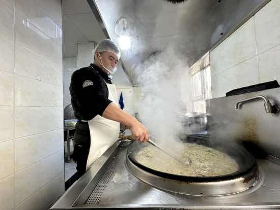 公交食堂的曲玉良师傅,正在为驾驶员准备午饭。节日期间由于公交班次发车间隔密,驾驶员中午就餐的时间特别短,曲师傅他们反复斟酌菜谱,努力让驾驶员们在仅有的时间能吃上一口热乎饭、暖心菜。