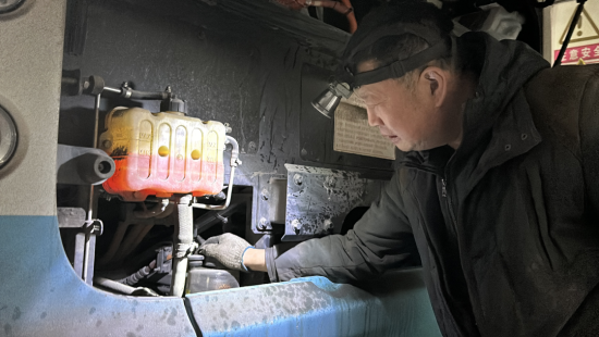 夜幕落下,维修中心赵纪祥开始对车辆进行检修,根据驾驶员行驶中反馈的问题,对车辆故障点开始排查。春节期间,他所在的维修中心班组坚持全员在岗,当车辆出现问题他们做到“第一时间维修、第一时间解决”,保证每一台车安全行驶。