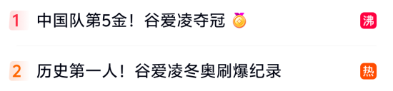 2月22日,在米兰冬奥会自由式滑雪女子U型场地技巧决赛中,中国选手谷爱凌以第三轮94.75分的成绩夺冠,为中国体育代表团赢得第五枚金牌。另一名中国选手李方慧在第三轮比赛中获得93.00分,摘得银牌。英国选手阿特金获得铜牌,中国队包揽了冠亚军。