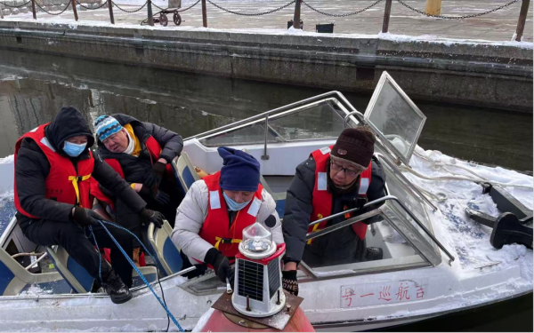 新雪季开始前,该局提前制定《护航2025-2026年新雪季旅游航道保通保畅工作方案》,成立工作专班,走访辖区水路客运企业,对接航行需求,更新航道图,编制并发放航标指引手册,现场指导船员准确识别并遵守航标指示。同时,依据水路客运企业实际需求,对小雾凇岛段航道开展专项测量,优化航标配布方案,科学布设智能航标8座,每日安排专人监测气象、水文,密切关注寒潮、大风、雨雪冰冻等极端天气预警信息以及航道水位变化,全力为船舶安全航行保驾护航。