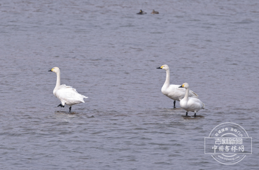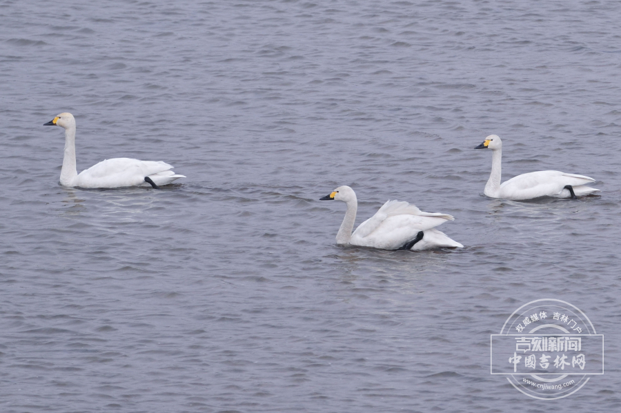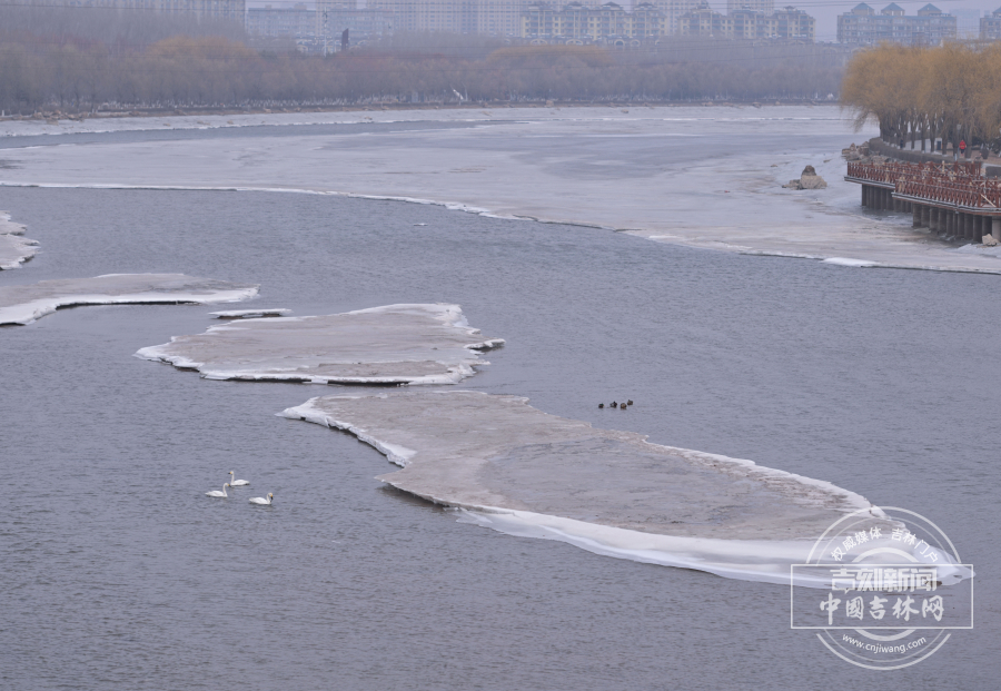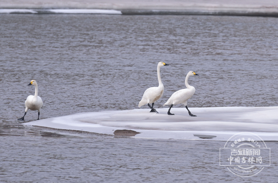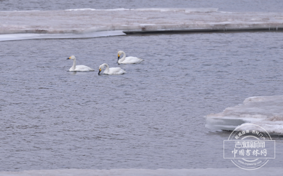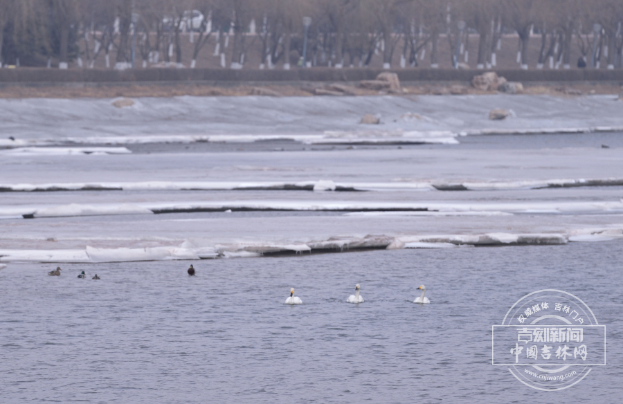 2月25日,长春伊通河来了三只白天鹅,它们在半冰半水的河中游弋。伊通河经过多年治理,生态越来越好,吸引大量迁徙鸟类在此“歇脚”。