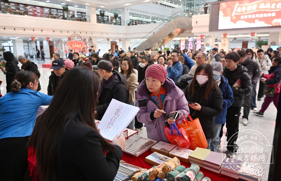 3月3日,正值元宵佳节,吉林省图书馆内“马岁春宵 谜藏福运”元宵节猜灯谜活动火热开启,千余盏印着灯谜的红色灯笼高高悬挂,现场人头攒动,市民们或驻足凝思,或互相探讨,或用手机记录谜面细细琢磨。有人踮起脚尖抬手轻触灯笼,专注破解谜题;有人围在服务台前核对答案,兑换心仪的文创奖品,欢声笑语不断。