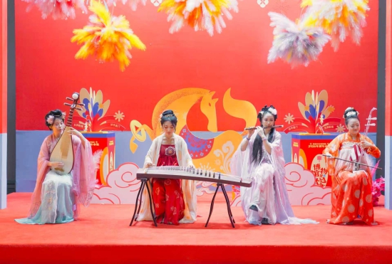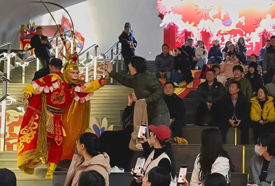 活动现场年味十足。《贺新春》国风音乐串烧将传统民乐与现代编曲巧妙融合,营造出喜庆祥和的氛围;《悟空闹元宵》趣味互动、《欢喜迎元宵》红绸鼓气势昂扬,精彩演出赢得现场阵阵掌声与欢笑。
