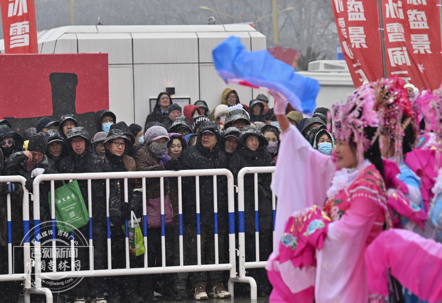 市民冒雪观看秧歌表演