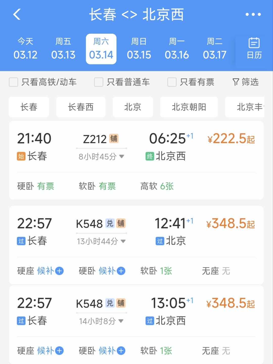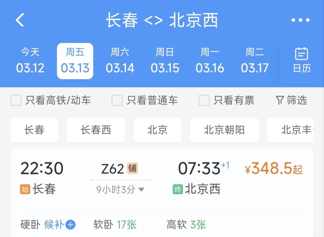 3月12日,有网友留言,从铁路12306上获悉,长春至北京西的Z62次列车从3月14日起暂停售票。北京西至长春的Z61次列车也将会在3月15日起暂停售票。
