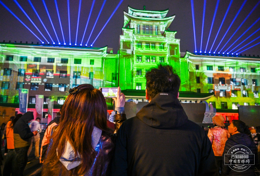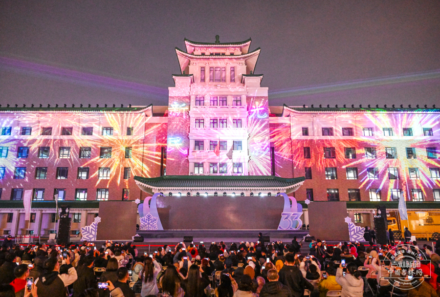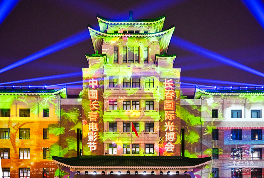3月21日晚,长春历史文化博物馆外墙化身巨幕,上演璀璨光影秀