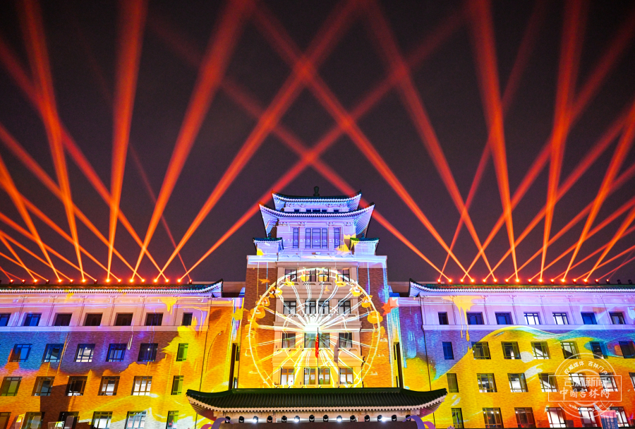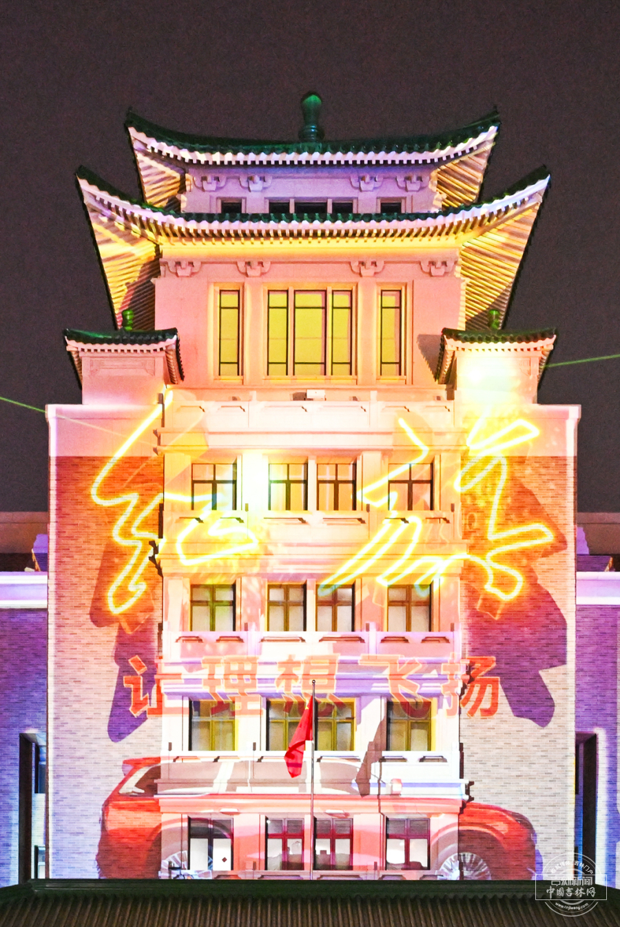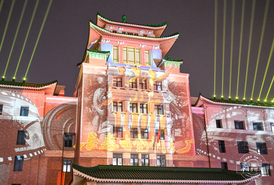 3月21日晚,长春历史文化博物馆外墙化身巨幕,上演璀璨光影秀。