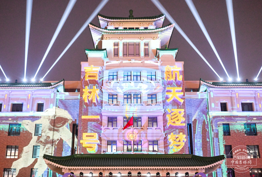 宇航员身影与“吉林一号”“航天逐梦”字样点亮夜空