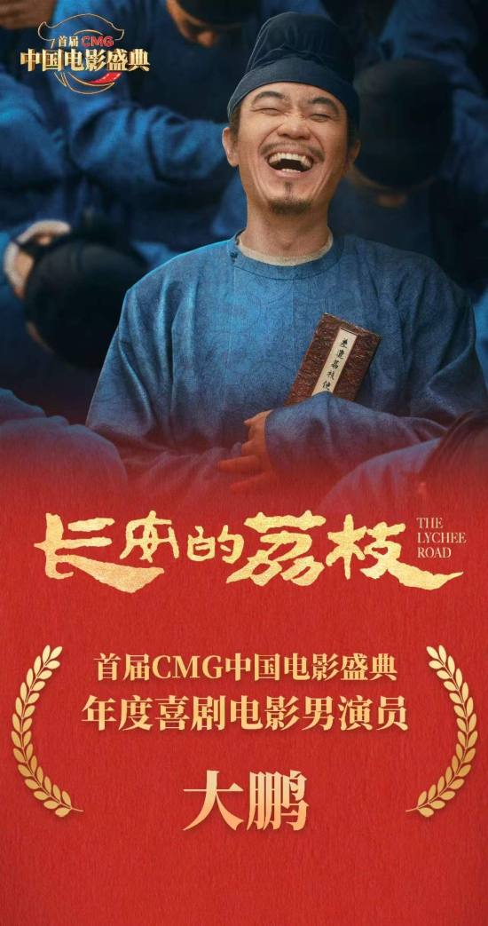 盛典现场重磅荣誉揭晓。长影联合出品电影《长安的荔枝》表现亮眼,一举拿下年度跨界力量、年度喜剧电影男演员(大鹏)、年度原创歌曲《庙堂之外》三项荣誉,成为本届盛典的亮点之作。