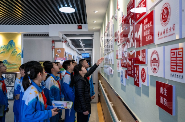 随后,学校领导带领师生们参观孩子们的学习生活环境,并欣赏学生画展,详细讲述作品背后的刻苦付出与励志故事。同学们认真聆听,深受触动。