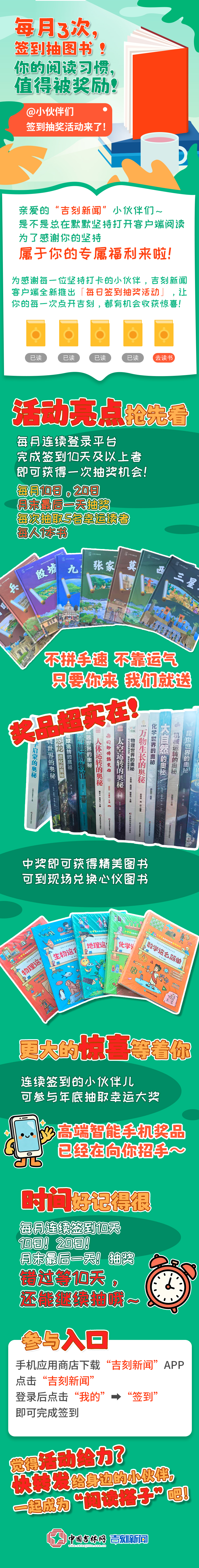 吉刻签到有礼|每月3次,签到抽图书!你的阅读习惯 值得被奖励!