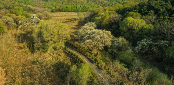 为让游客沉浸式领略梨花谷的灵秀与壮阔,景区沿山谷地形精心修建2160米长生态木栈道,栈道蜿蜒穿梭于青山翠谷与梨花林海之间,移步易景、步步皆画。漫步栈道之上,既可俯瞰东辽河源头的清泉潺潺,仰望小寒葱顶的山峦叠翠,又能尽览满谷梨花的浩渺盛景,感受“人行花海里,心在画中游”的悠然意境,将源头生态、古梨风情与山野灵秀尽收眼底。