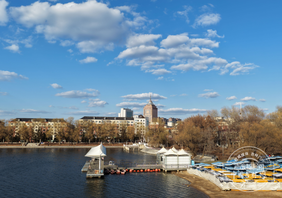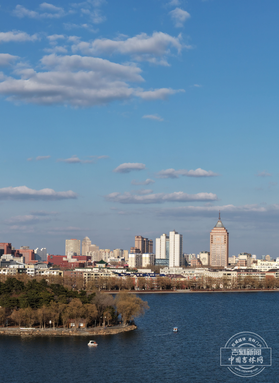 4月7日,经历雨雪天气后的长春天空晴朗,湛蓝如洗。南湖公园上空朵朵白云与粼粼湖水相映成趣,勾勒出一幅秀美的春日画卷。