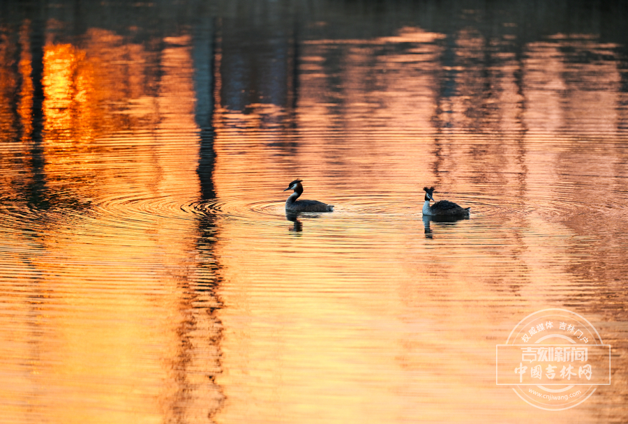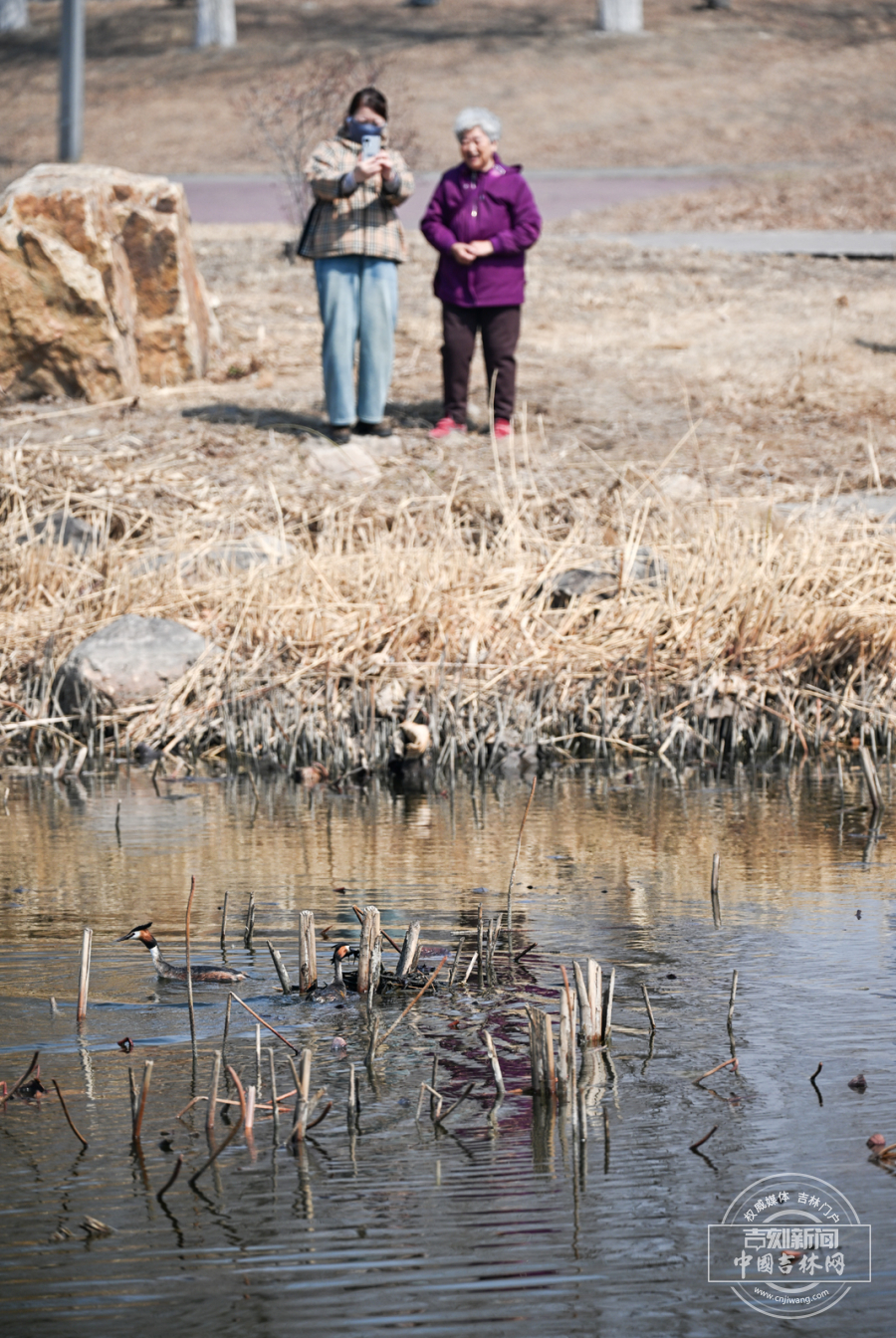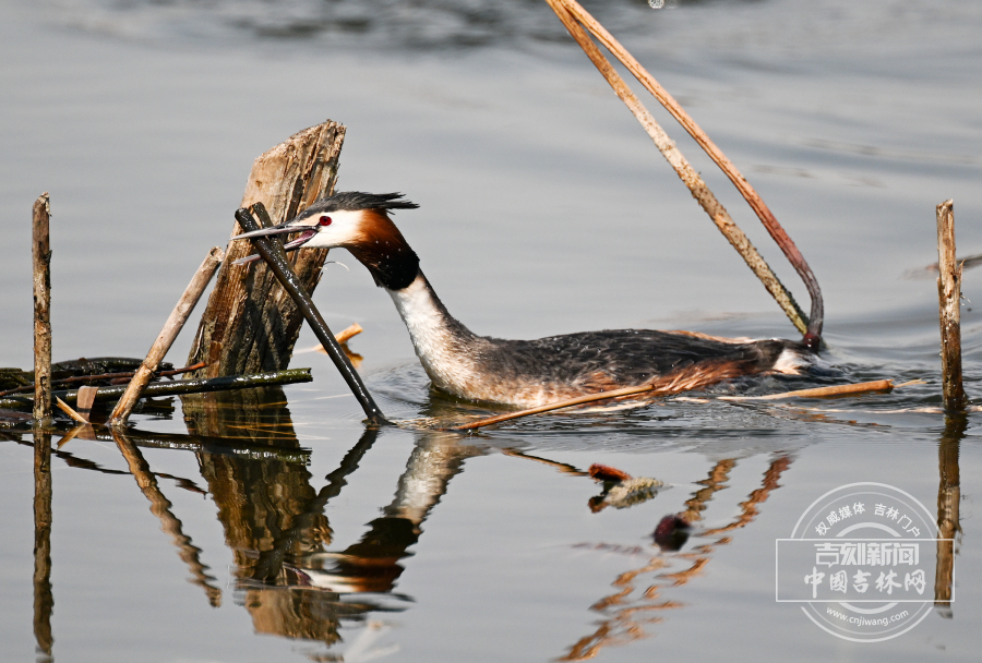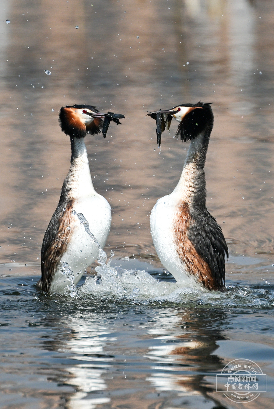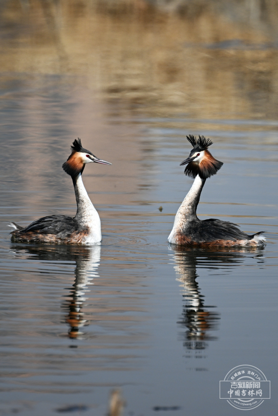 南溪湿地公园内,凤头鸊鷉上演“撞胸”求偶名场面