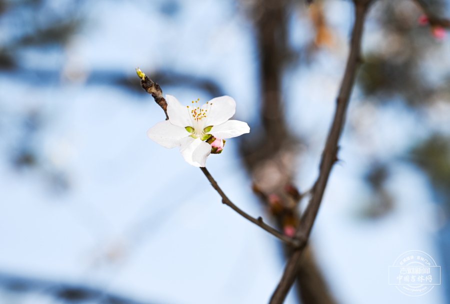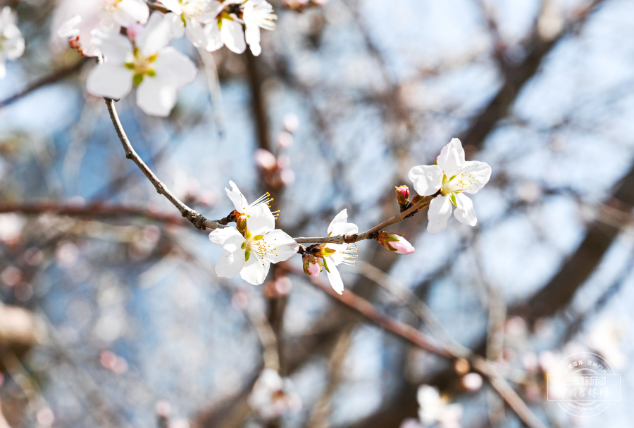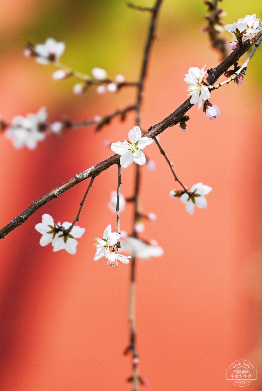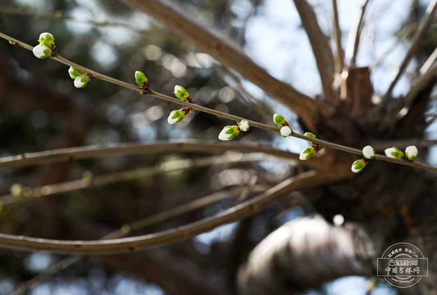 4月12日,长春东中华路的杏花、牡丹园与友谊公园的连翘次第开放,春意渐浓,吸引市民驻足赏花。中国吉林网 吉刻新闻记者 罗浩 摄影报道