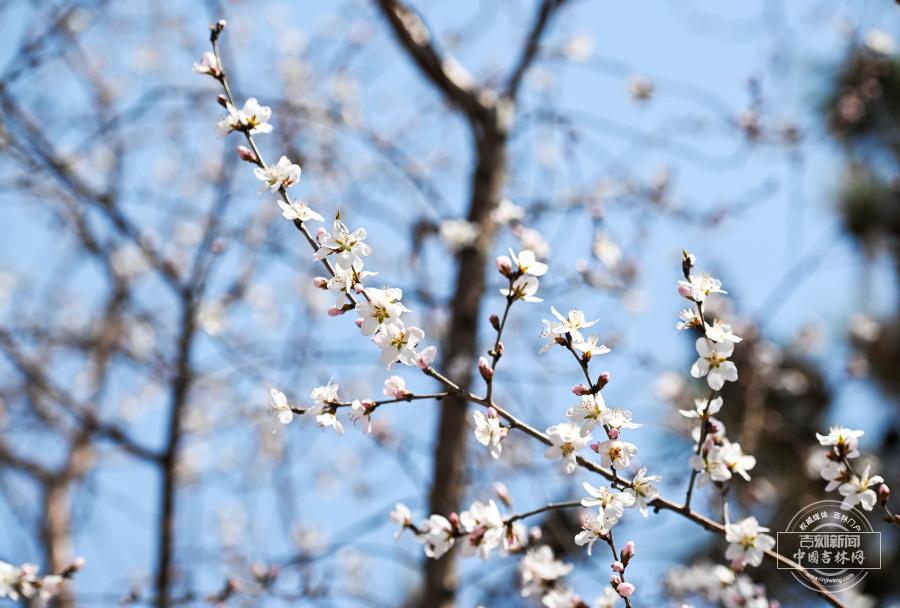 长春东中华路与百汇街交会处的杏花开放