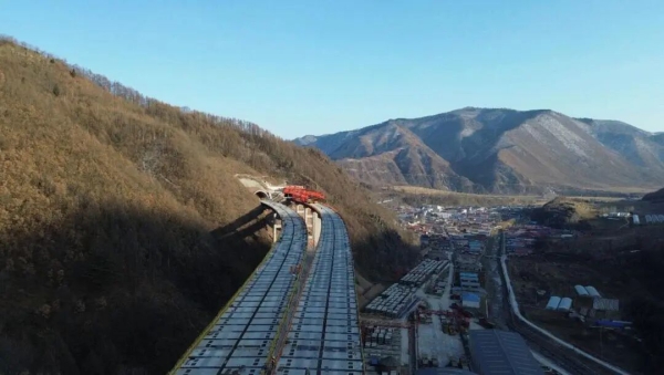 据悉,石门湖特大桥地处中朝边境长白山区,钢桥长近2公里,50米单跨构件超170吨;地形复杂、高差大、施工环境严苛,是松长项目全线重点控制性工程之一。