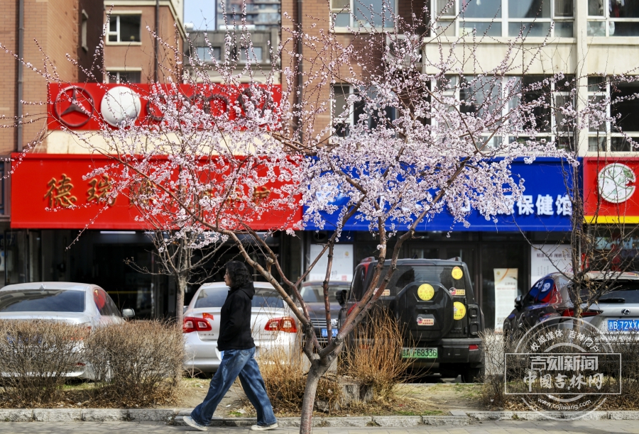 春日已至,繁花满枝。近日,长春市荣光路街头的桃花如约而至,粉白花朵缀满枝头,在暖阳下竞相绽放,为城市增添了一抹灵动的春日色彩。街道两旁树枝上的桃花,有的完全绽放,露出嫩黄的花蕊;有的还是饱满的花苞,透着粉嫩的生机。微风拂过,花枝轻颤,花香浮动,与远处的街景、往来的行人相映成趣,构成了一幅充满生机的春日街景图。不少市民驻足树下,举起手机记录下这限定美景,还有的市民在花下漫步,沉浸式感受春日的浪漫氛围。