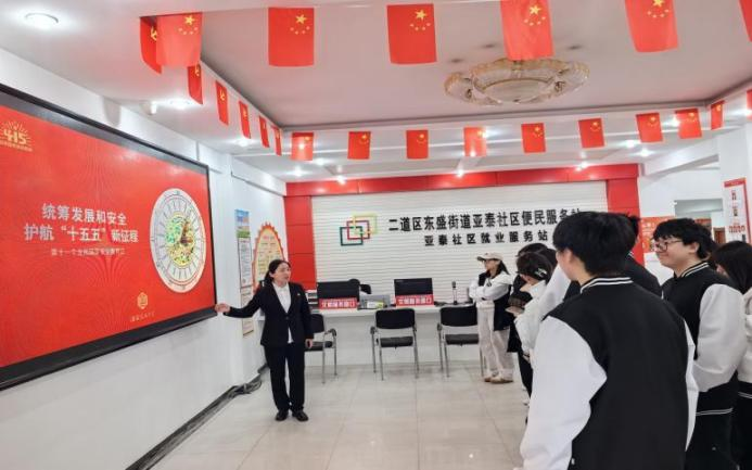 亚泰社区深挖辖区红色教育资源,组织长春师范高等专科学校的17名学生,依托社区“雷锋讲堂”特色阵地,将雷锋精神中“爱国奉献、担当尽责”的精神内核与国家安全宣传教育深度融合,用青春声音传递国安理念。吉祥社区联动辖区派出所民警,量身打造“守好养老积蓄 远离诈骗陷阱”主题宣讲,用真实案例拆解骗局套路,以“微课堂”讲透“大安全”。同时,网格员们把宣讲融入日常走访,开展“嵌入式”上门宣讲,把安全知识精准送到群众家中、送到群众耳边。