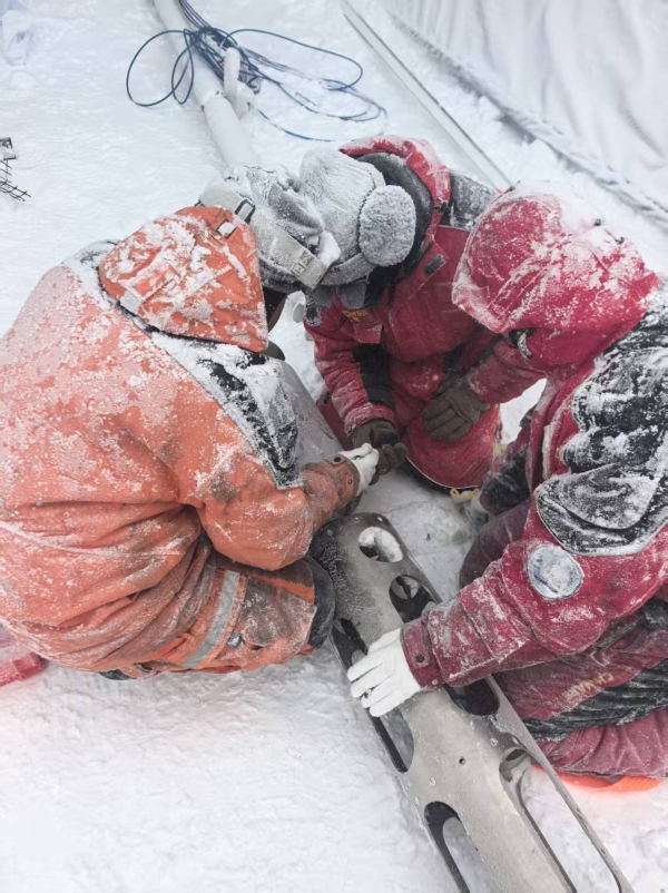 对于年轻队员而言,这段经历更是珍贵的成长。博士生张旭第一次参与南极科考,深刻体会到现场与实验室的差异:“课本里学不到的实践智慧,只有在这片冰原上才能真正领悟。我知道南极现场是一个低温环境,但真到了内陆不仅有低温还有大风,我们手上戴的编织手套几分钟就要换,不然就会结冰。但是大家朝着同一个目标并肩作战,这种凝聚力,让我们克服了所有困难。”同为首次出征的博士生王良玉也分享了自己的感受:“除了和大家一样,见证纪录的瞬间让我特别骄傲和自豪外,我的课题正好和热水钻探相关,在南极得到验证也非常开心,这是一次特别宝贵的经历。”