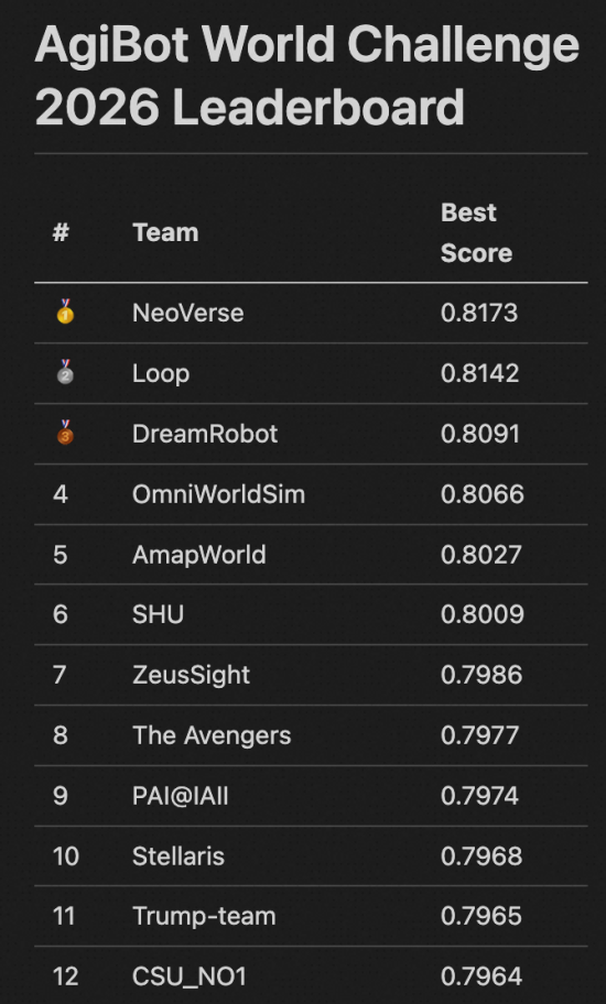 近日,在Agibot World Challenge与World Arena两大国际权威评测中,中国Abot-world系列世界模型实现了双双登顶,谷歌、英伟达等海外顶尖科技公司均参加了本次评测。这标志着中国在具身智能核心基础能力——世界模型构建方面已经处于全球领先水平。