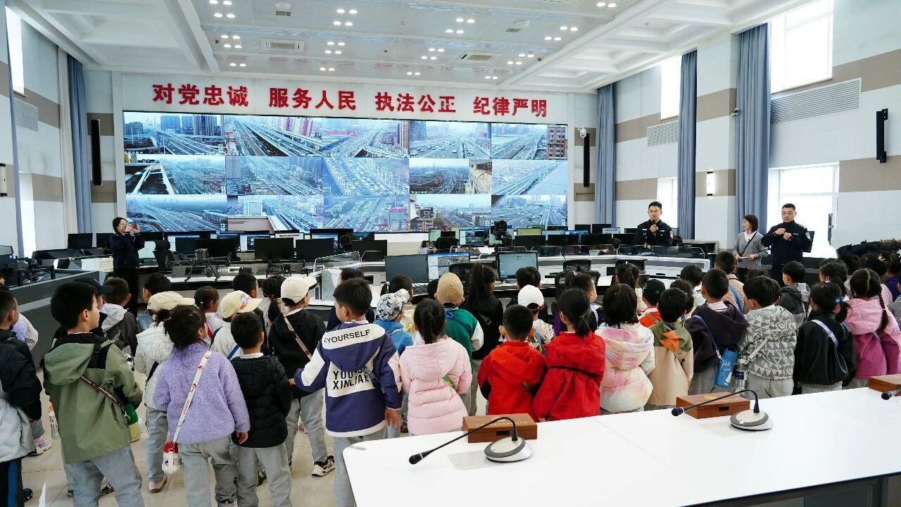 在指挥中心大厅,巨型监控大屏瞬间吸引了所有孩子的目光。屏幕上,城区各主干道的实时路况、车流动态一目了然。民警现场讲解指挥中心的运作模式,并介绍如何通过监控系统实时监测路况、排查交通隐患、查处交通违法、疏通交通拥堵。让孩子们对智能交通系统、交警工作流程、交通违法行为和安全出行等方面的知识有了全新的认识。