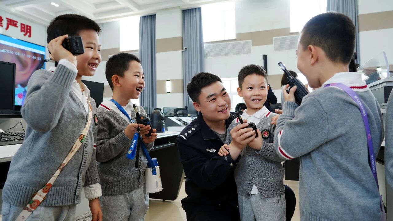 在警械展示环节,孩子们对酒精测试仪、执法记录仪、电台、警棍等各类警用装备充满好奇。民警耐心细致地讲解每一种装备的功能与使用场景,孩子们近距离接触、亲手触摸,在互动交流中增长了警用装备相关知识。