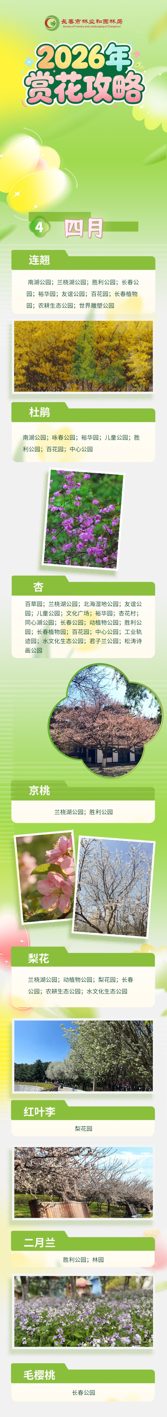 四月中下旬,长春天气回暖,又到了赏花的好时节,连翘、桃花、杏花等陆续绽放。市民游客朋友们知道 长春都有哪些花?看花需要去哪些地方么?4月17日,中国吉林网、吉林新闻记者从长春市林业和园林局了解到,2026年长春赏花地图已经制作完成,从四月到十月,承包整个花季,赶快收藏保存!