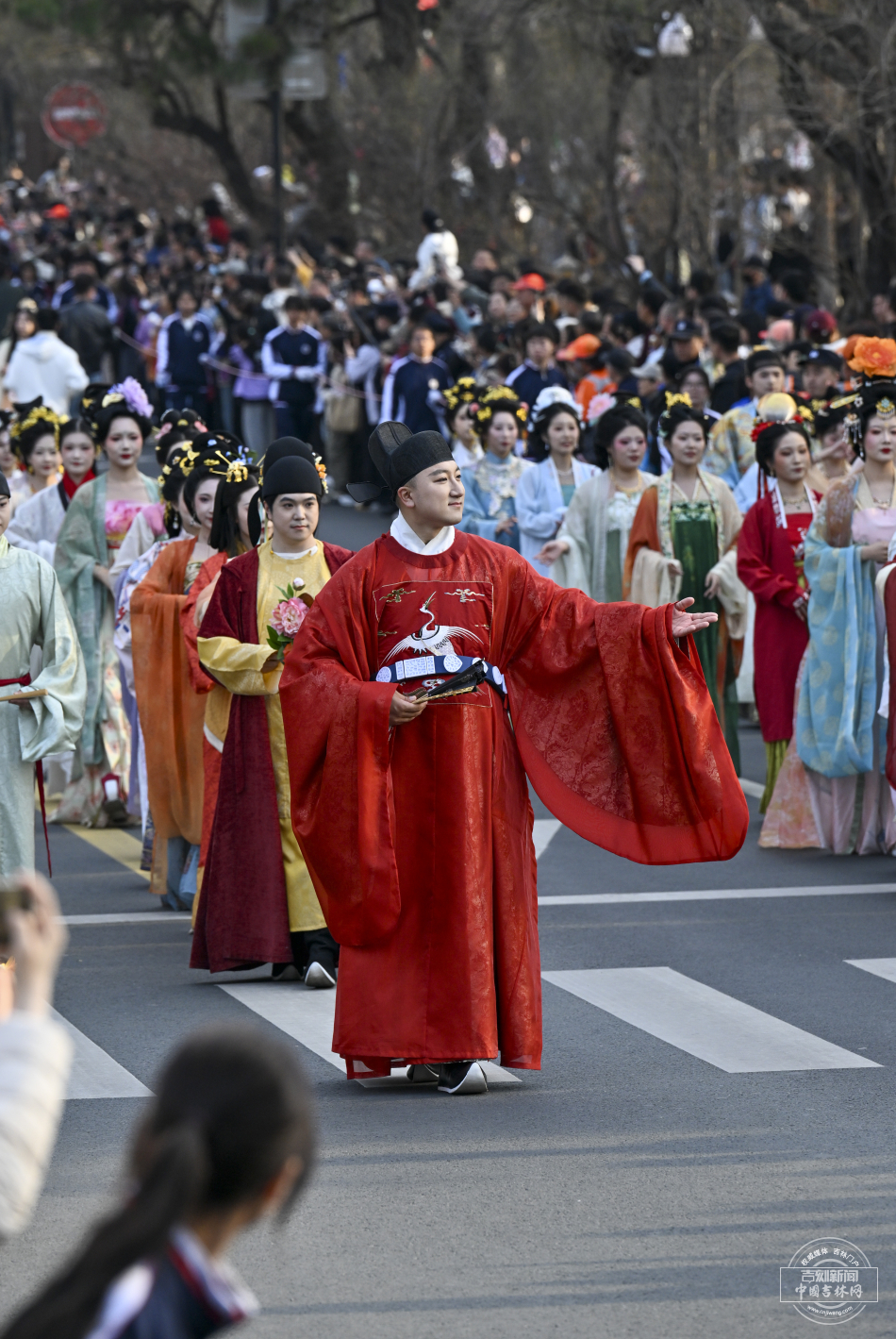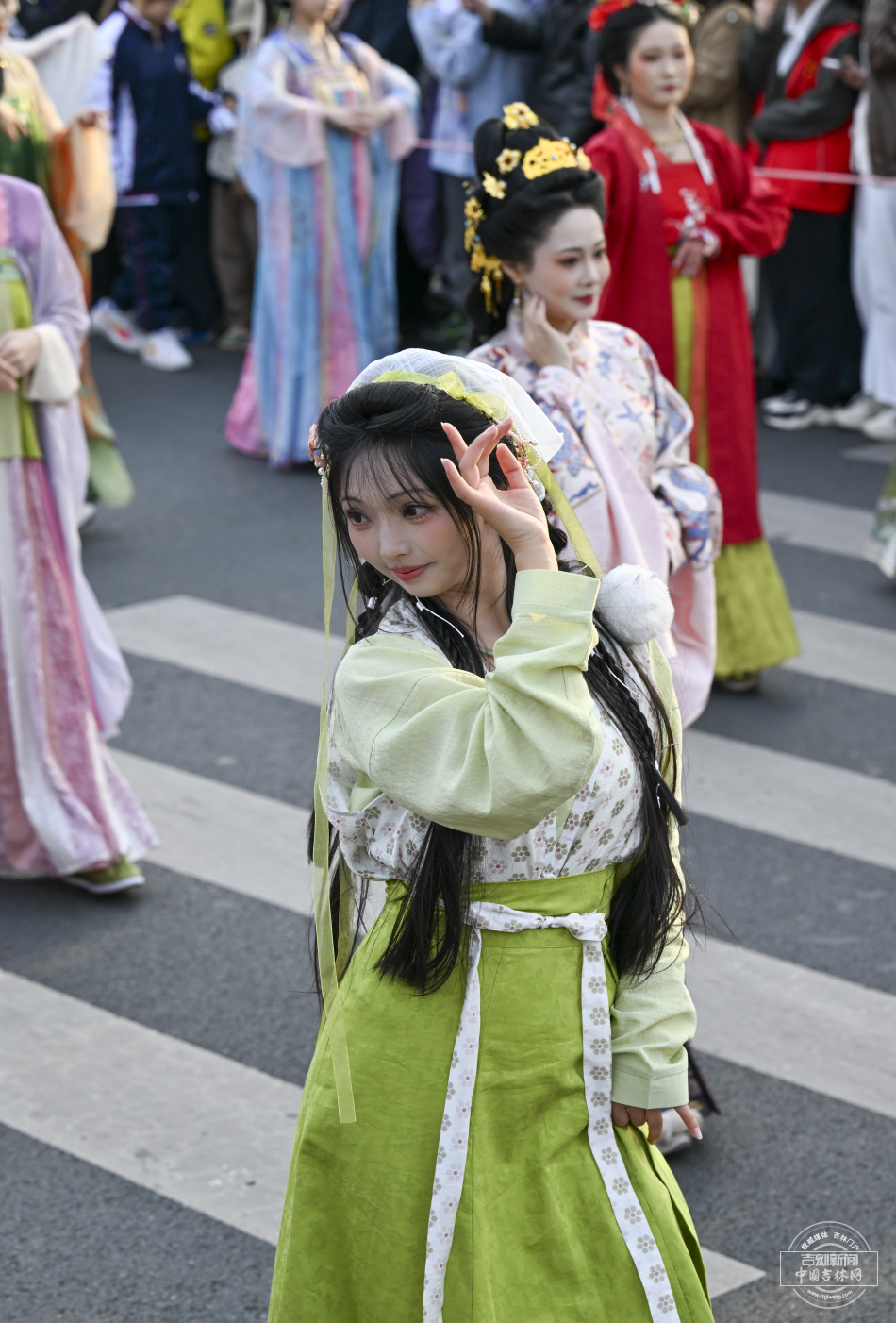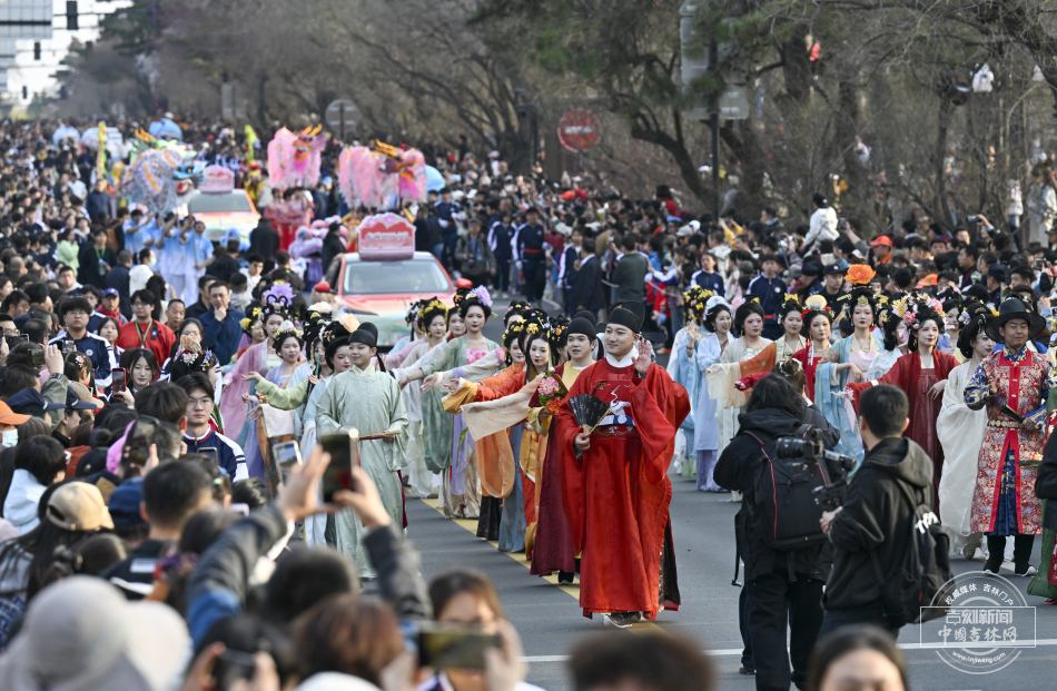 4月18日,2026 年“中国华服周·吉韵东方”华服巡游盛典于长春新民大街精彩上演。街道之上,身着形制各异、配色雅致的传统华服巡游队伍款款前行,仕女衣袂翩跹、雅士风度翩翩;后方舞龙舞狮方阵气势昂扬,古韵与民俗交融。道路两侧人山人海,市民游客争相驻足观赏、拍照留念,沉浸式感受中华传统服饰的典雅之美。