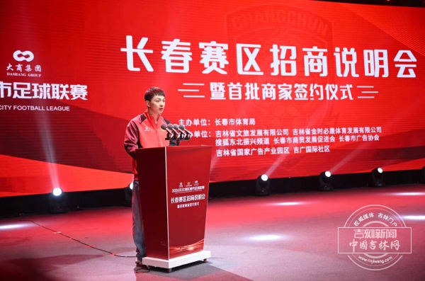 4月21日,由长春市体育局主办的“卡尔美体育·大商 ”2026东北地区城市足球联赛长春赛区(简称:长春赛区)招商说明会暨首批商家签约仪式,在吉林省国家广告产业园举行。