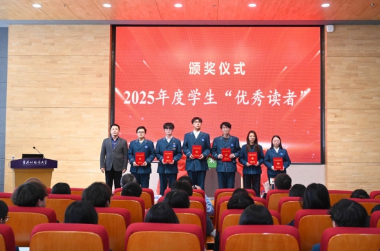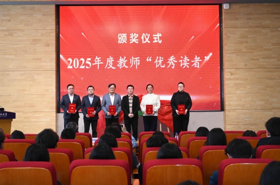 活动现场,学校表彰2025年度师生“优秀读者”。国际金融与贸易学院教师田浩、国际关系学院学生卢祉瑞分别代表师生分享阅读感悟与教学、学习中的阅读推广经验。