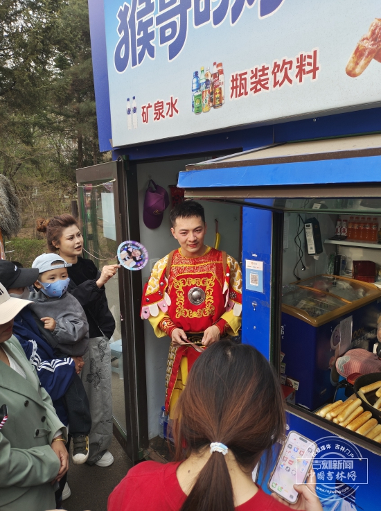 铁板上滋滋冒着油香,排队的队伍蜿蜒出十几米远。最热闹的不是买烤肠的瞬间,而是那个被人群层层围住的身影——“雪饼猴”王庆峰。