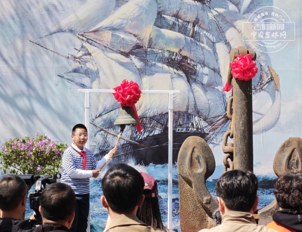 随后,长春市文广旅局副局长、文物局局长郑国君与伪满皇宫博物院院长谢群共同为展览揭幕,现场敲响船钟八响,以航海文化最高礼遇宣告展览正式开幕。开幕式后,嘉宾与观众有序入场参观,在文物与互动装置中沉浸式感受航海历史与海洋文化魅力,中小学师生更是在体验中学习航海知识,收获满满。