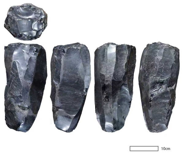 和龙吉地遗址出土的巨型黑曜岩石叶石核,长53厘米、重达16.3公斤,形制规整、工艺精湛,是目前全球最大、最完整的同类器物,即便现代手工技术也难以复刻。