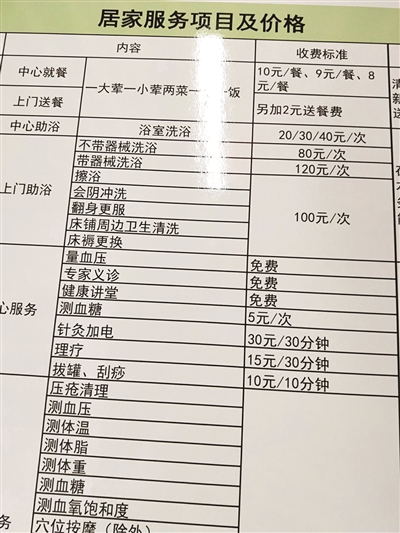 来机构洗澡也可以。自己洗20元,社工帮助洗40元。记者了解到,进入春季以来,原先来机构洗澡的老人也渐渐少了,机构内的浴室也近停摆。同样在这个居家服务点,每天从周围几公里半径内赶来的老人还真不少,他们除了来吃饭、订餐,不少老人在此享受各种低偿或无偿服务。据在这里提供中医服务的负责人介绍,老人们对于免费的项目很感兴趣,往往要排队,而对于几十元半小时或一小时的理疗等,观望的更多。