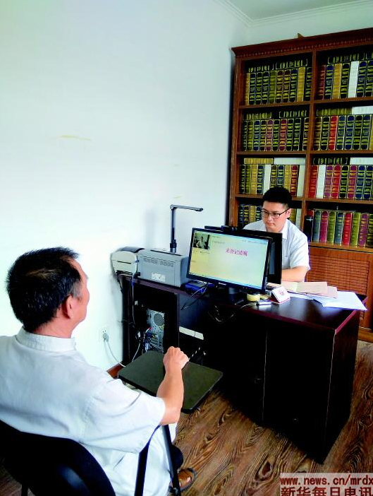中华遗嘱库北京第一登记中心法务人员为老人登记遗嘱。