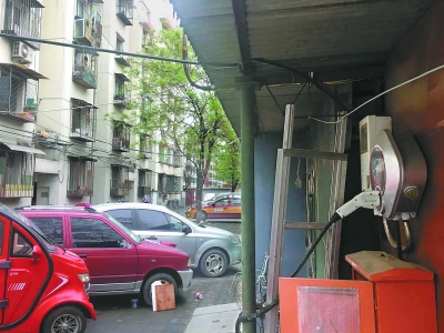 三路居的一处共享充电桩,因老小区道路狭窄,外人难以进来。