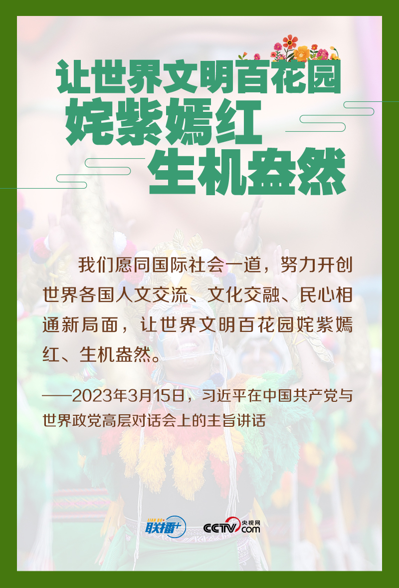 联播+ 2023年年初,习近平总书记在中国共产党与世界政党高层对话会上首次提出全球文明倡议。他强调,我们要共同倡导加强国际人文交流合作,探讨构建全球文明对话合作网络,丰富交流内容,拓展合作渠道,促进各国人民相知相亲,共同推动人类文明发展进步。