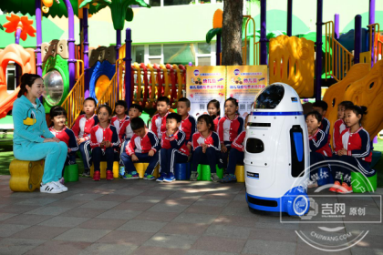 长春幼儿马拉松比赛首场比赛现场,吉网、吉刻APP记者看到了一个熟悉的身影,那就是本次比赛决赛的团体大奖——小胖机器人。这个能歌善舞能说会道的“小胖”一直在场边当“啦啦队”,为孩子们加油打气助威,赢得了很多老师和孩子们的关注。