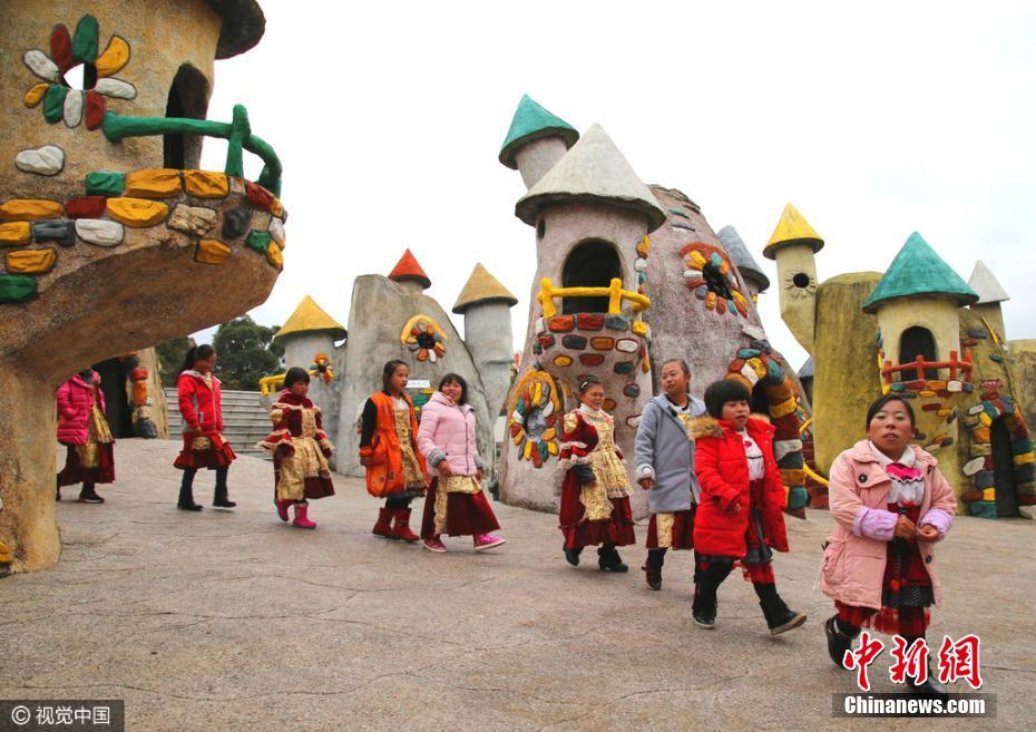 据记者了解,这里生活着100多个身高不超过一米三的袖珍人,他们中年龄最大的已过五旬,最小的只有20岁。他们还组成一个“小人国艺术团”,每天向前来参观的人们表演节目和展示才华,在表演精彩时,人们往往会一边拍照,一边喝彩。 图片来源:视觉中国