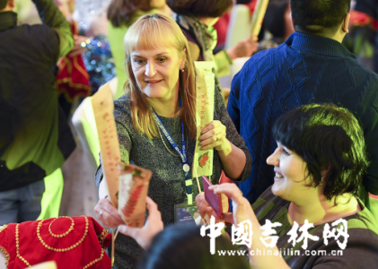 尤其那个二人转的手绢,让参会者特别是外国朋友,感到十分的新奇,在吉林朋友的指点和帮助下,转起手绢来,刚开始还有些摇晃,渐渐地有了感觉,手绢转动得灵巧起来。