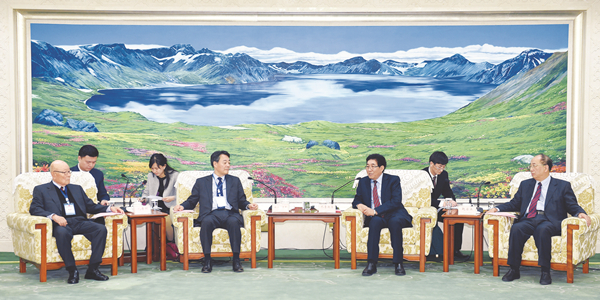 吉林日报10月17日讯 记者 曹梦南 17日晚上,省委书记巴音朝鲁在长春会见了出席第三届中日韩人文交流论坛的中央外宣办原主任、国务院新闻办公室原主任赵启正,日本民主党前党首、经济产业省前大臣海江田万里,韩国前外长、东亚财团理事长孔鲁明和中日韩三国合作秘书处秘书长杨厚兰等与会主要嘉宾。