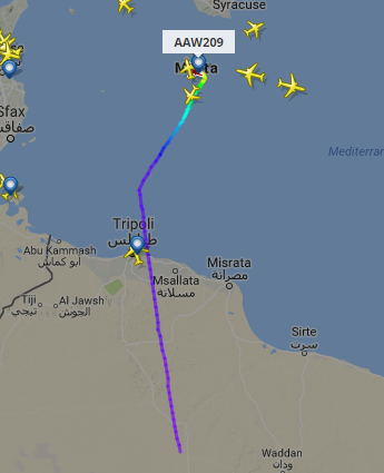 马耳他时报:这架航班当地时间周五10:10从塞卜哈起飞,航班号8U209,原计划11:20到达首都的黎波里。