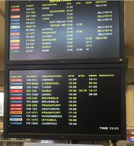 马耳他机场目前暂时关闭,所有飞往马耳他的航班都必须等候或者备降。